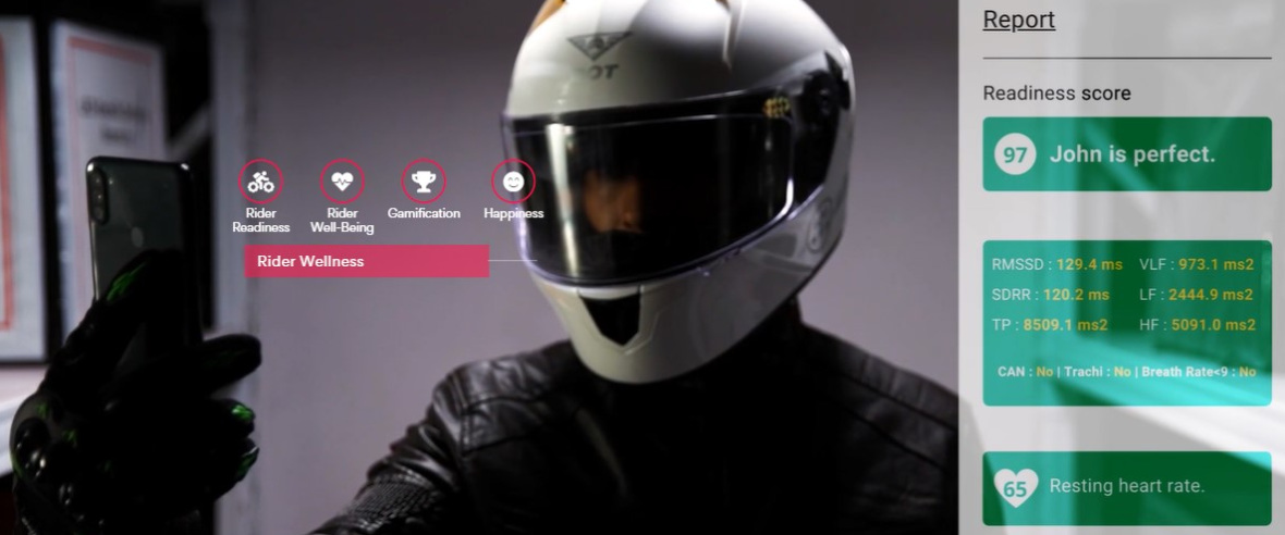 We have thought of a unique concept & named it ‘Rider Readiness.’ As the name suggests, we have designed a solution to determine if the rider is ready & safe to start his day or not. To achieve this, we will obtain the heart rate data from a chest belt, which will then be processed into patented software. The report from this software will reflect a person’s current stress level & overall health status, translated into a simple score. A good score will mean that the rider is good to go & can start his day happily!